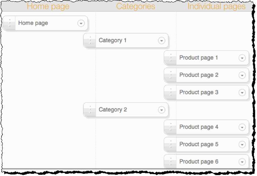 Your structure or taxonomy, then, should be developed before you even begin building your website. As a practice, too, developing a website structure can help you refine your business offering. Again, you can create a taxonomy in any number of ways, but it can be helpful to think about a new website in terms of a home page, category page, and product pages.