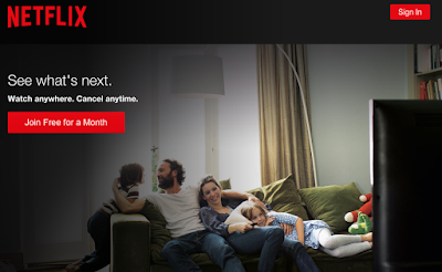 | Netflix's call-to-action button is emphasized by simple, declarative phrases. [Photo Source] |