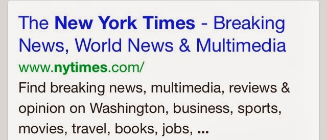 The page title is the title Google uses for your search engine result, and the page description (or meta description) is the snippet of text offered below the page title. In the image below, the page title is "The New York Times - Breaking News, World News, & Multimedia." The description is below the address: "Find breaking news..."