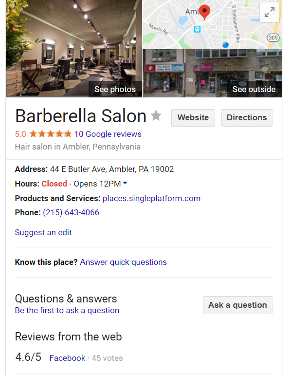 | A Google My Business Account for a local hair salon, in Ambler, PA: Barberella |